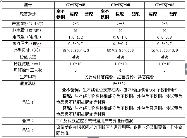 7、一機(jī)多能。生產(chǎn)線通過(guò)增減配置可以生產(chǎn)不同的原料,如馬鈴薯水晶粉絲、紅薯黃金粉絲、方便粉絲等。